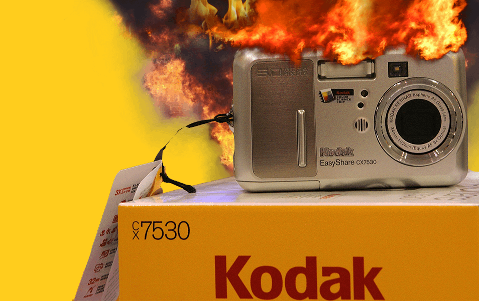 Оплошность этой компании относится к сфере стратегических решений. Она привела к более плачевным последствиям. Много лет компания занималось проявкой и печатью фотоснимков. Само понятие фотографии буквально ассоциировались с их именем.