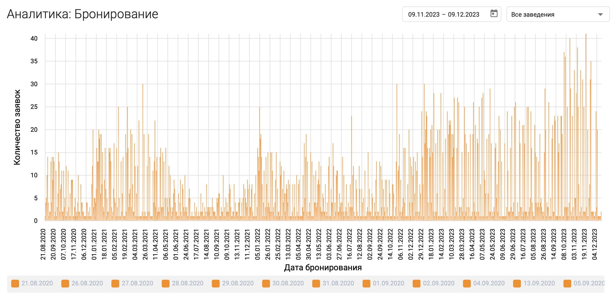 Статистика оформления заявок на бронирование в сети заведений