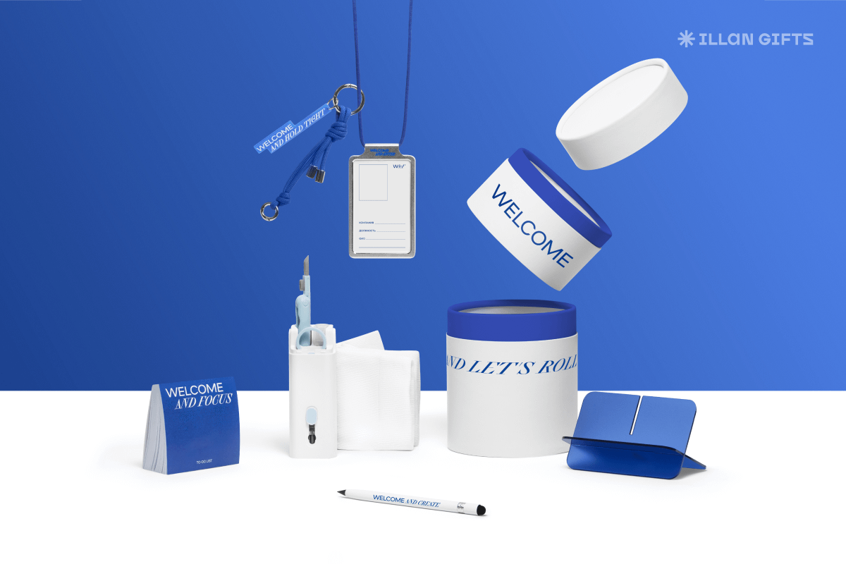 При разработке коллекции welcome pack агентство Illan Gifts хотело сделать не просто набор «как у всех», а приветственные боксы для решения любых задач бизнеса — продукт, который бы закрывал боли коллег.